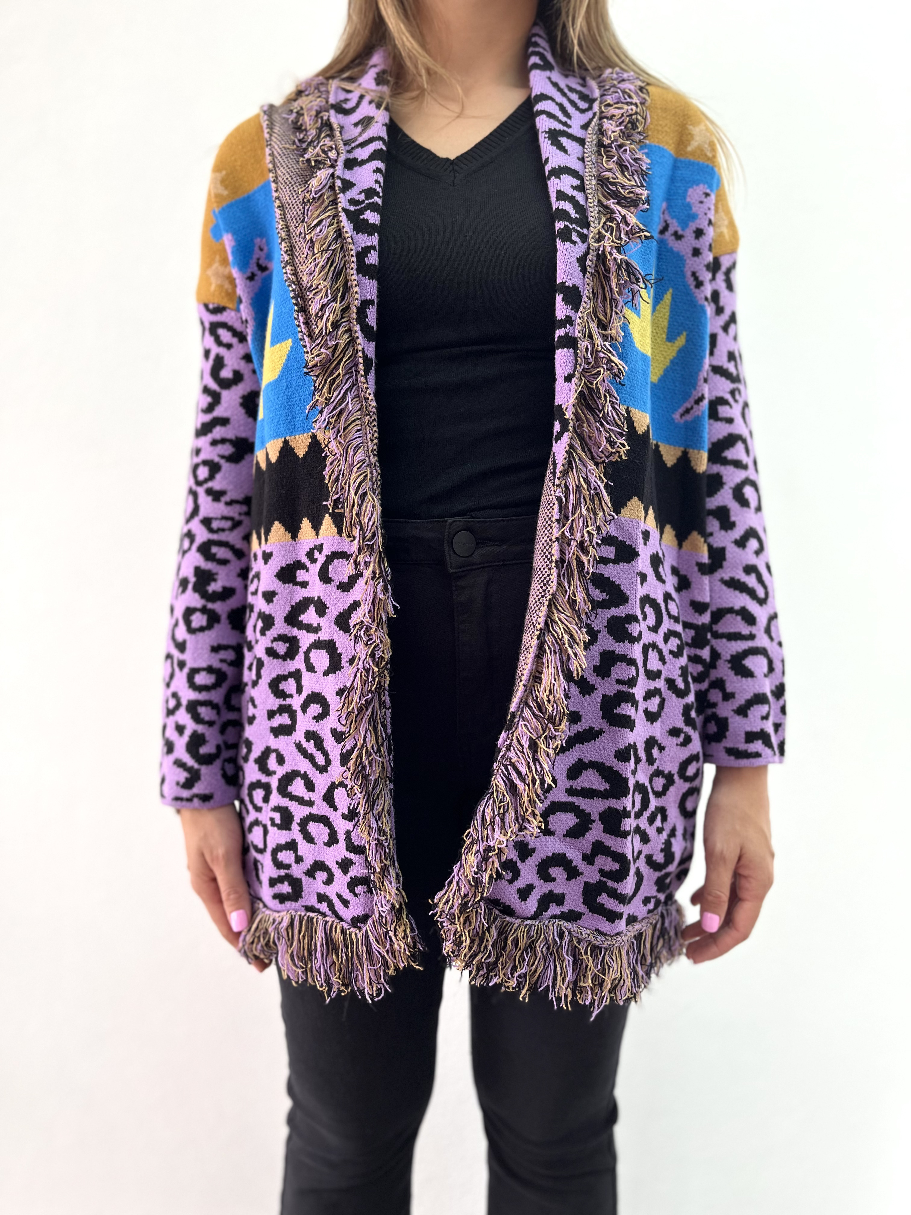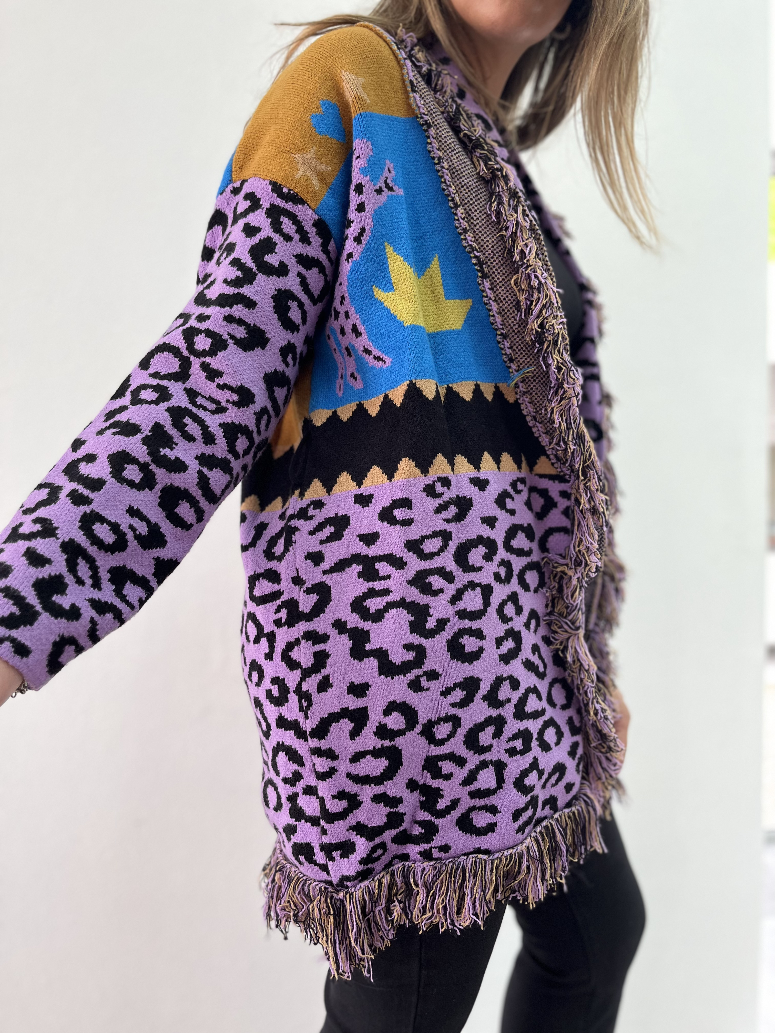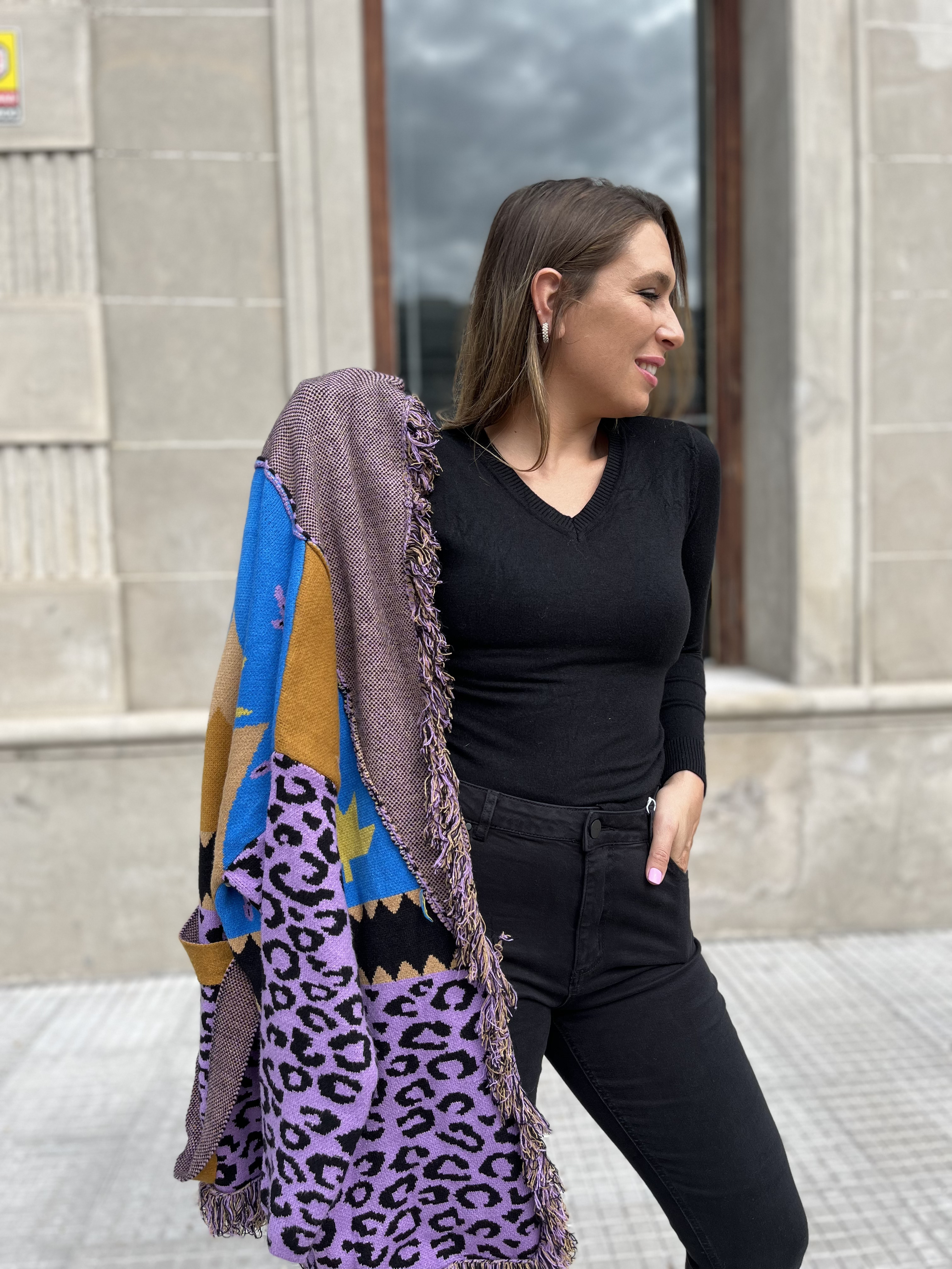 Saco estampado, italiano. Tejido suave y elastizado. Talle único.